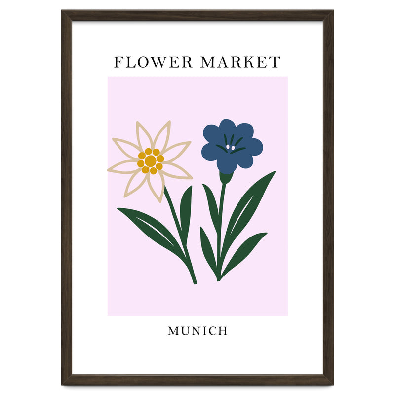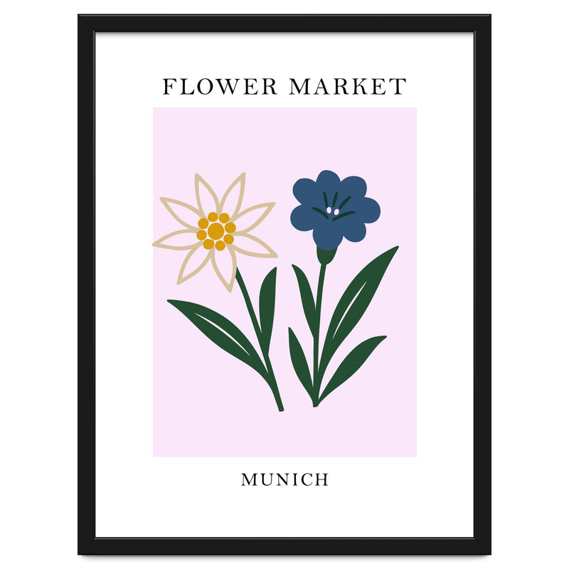 This elegant print, titled "Munich Flower Market," captures the simple, natural beauty of the Bavarian region with a clean and minimalist style.