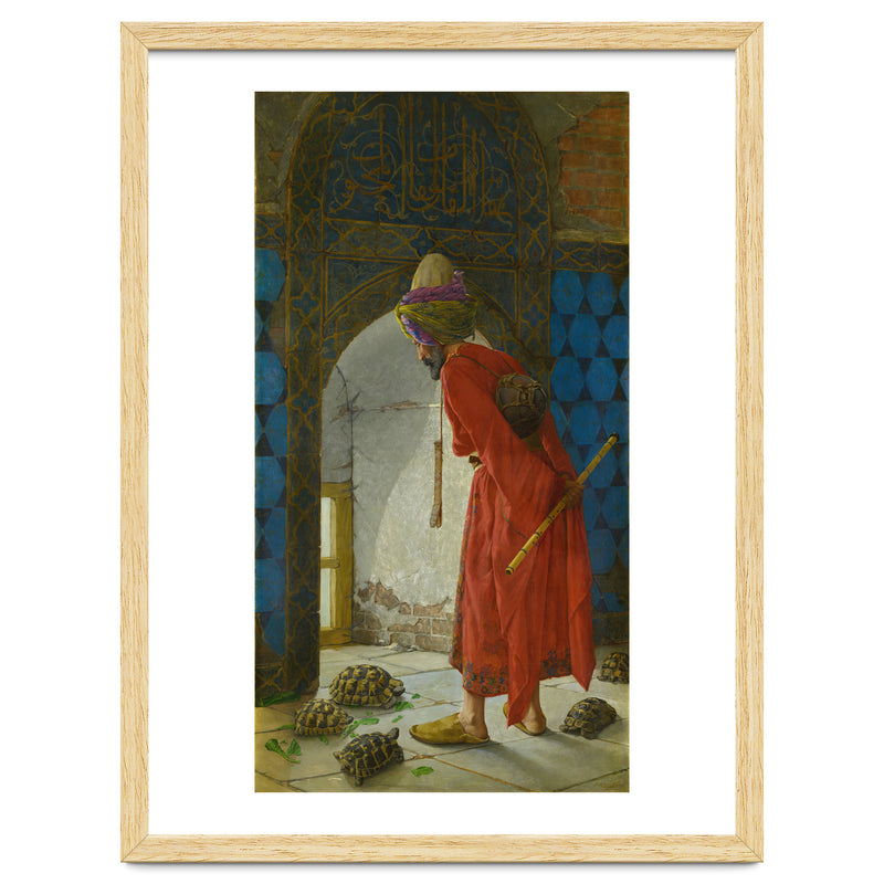 Discover one of the most captivating paintings by the renowned Ottoman artist Osman Hamdi Bey. The Tortoise Trainer (1906) presents a thoughtful and symbolic scene of a dervish observing tortoises as they move slowly around him. The rich details, traditional garments, and warm tones create a powerful visual story that draws viewers in. This artwork adds a touch of elegance, history, and cultural depth to any space. Perfect for living rooms, offices, art lovers, and anyone who appreciates classical Orientalist aesthetics. Its calm atmosphere and meaningful symbolism make it a striking centerpiece that sparks conversation and admiration.