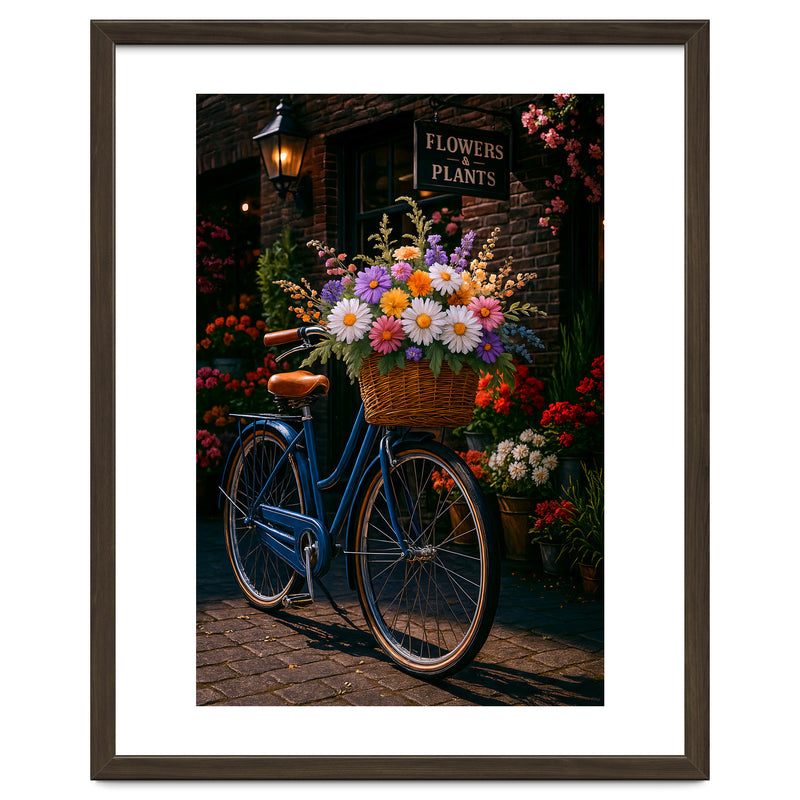 Parisian Bloom" - The Aesthetic of a Bicycle at a Flower Shop 🌟 Product Description Bring the charm of European streets, the sweet aroma of happiness, and the perfect Instagram feed vibe into your room with our premium Wall Art. This piece features a highly aesthetic subject: a Classic Bicycle leaning against the busy facade of a Flower Shop, complete with a front basket overflowing with fresh blooms. This painting captures a quiet, colorful moment. The focus is on the contrast between the vintage metal of the bicycle and the burst of color from the roses, peonies, and hydrangeas in the woven basket. Soft lighting (perhaps morning or late afternoon) illuminates the scene, providing warmth and depth. It is a perfect representation of slow living, the beauty of detail, and a passion for florals. "Parisian Bloom" is the ideal décor choice. It is suitable for the kitchen, breakfast nook, bedroom, or a shop/café that wants to exude a cozy, feminine style, and everyday romance.