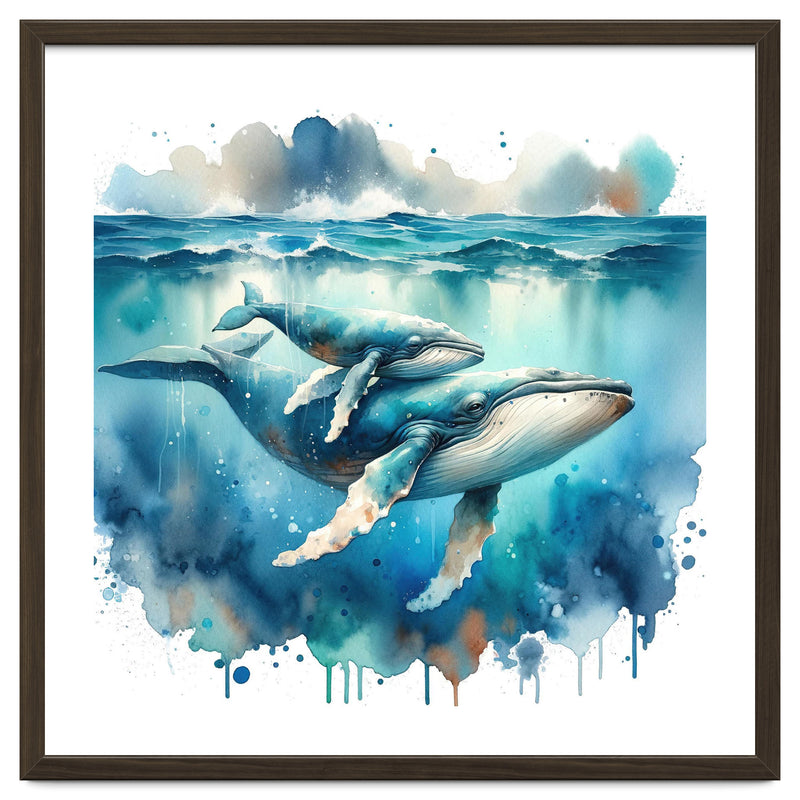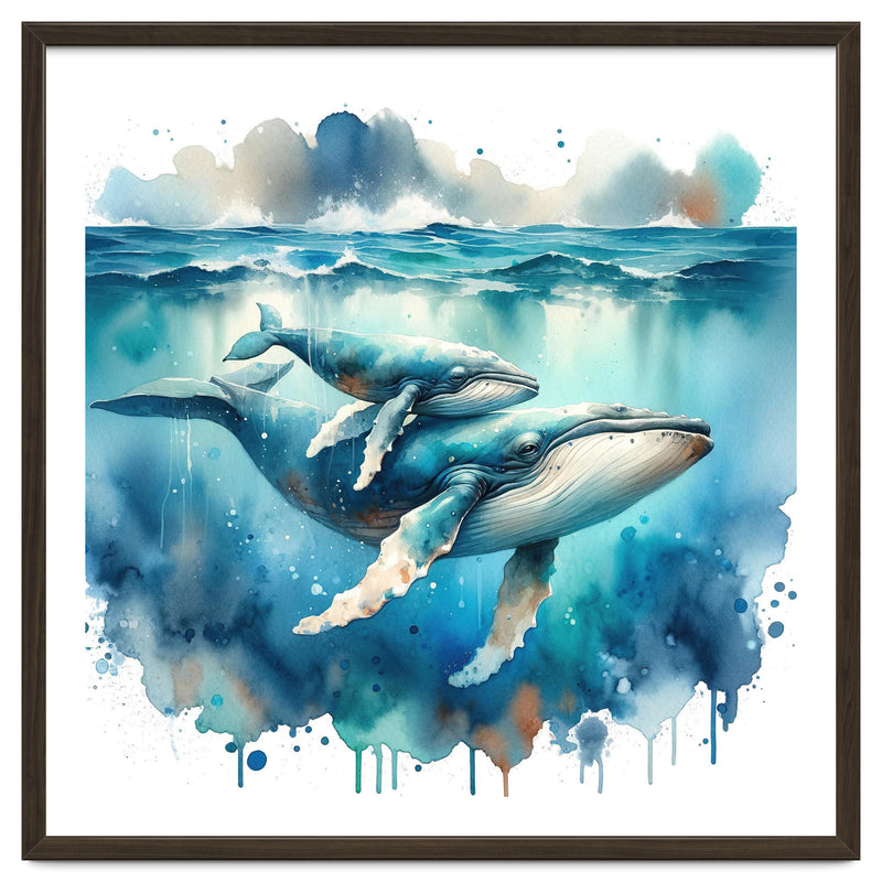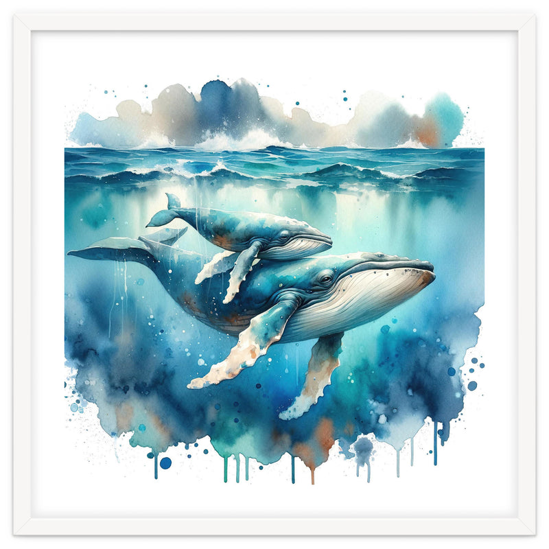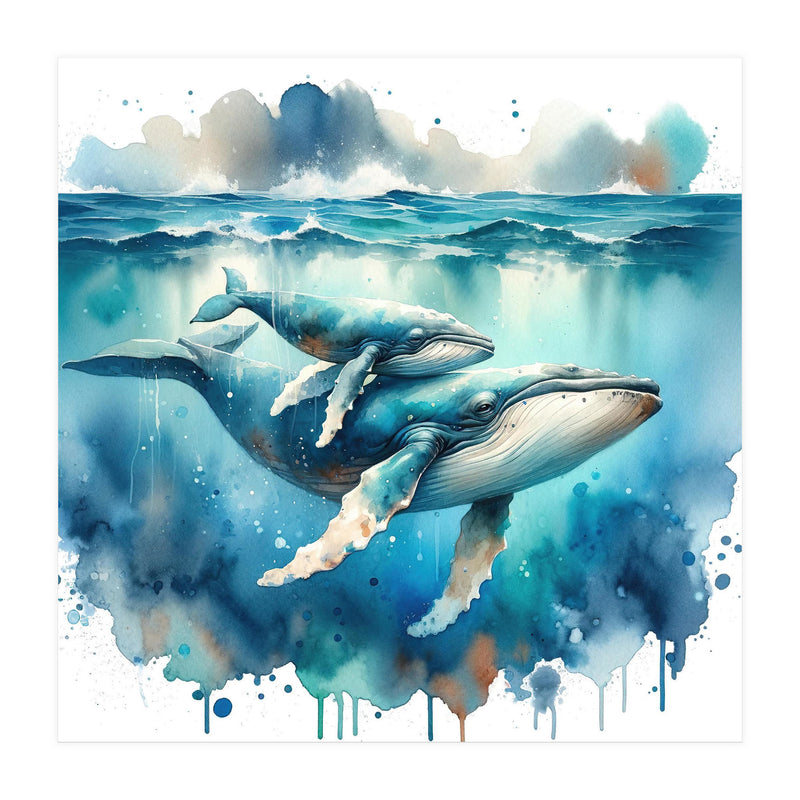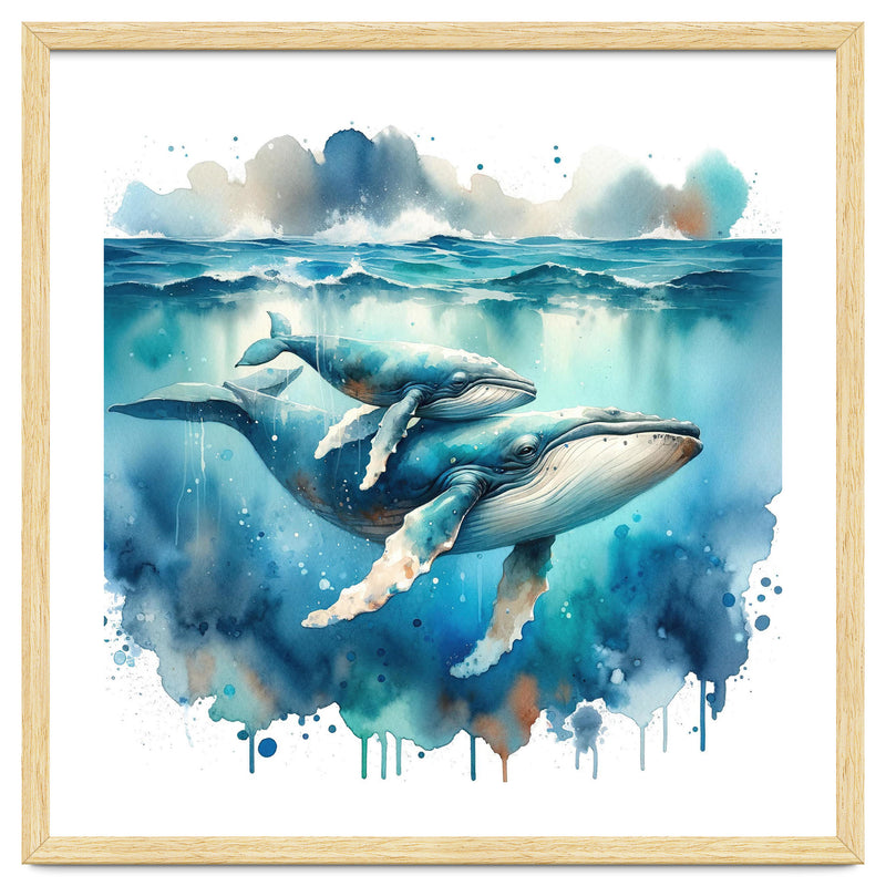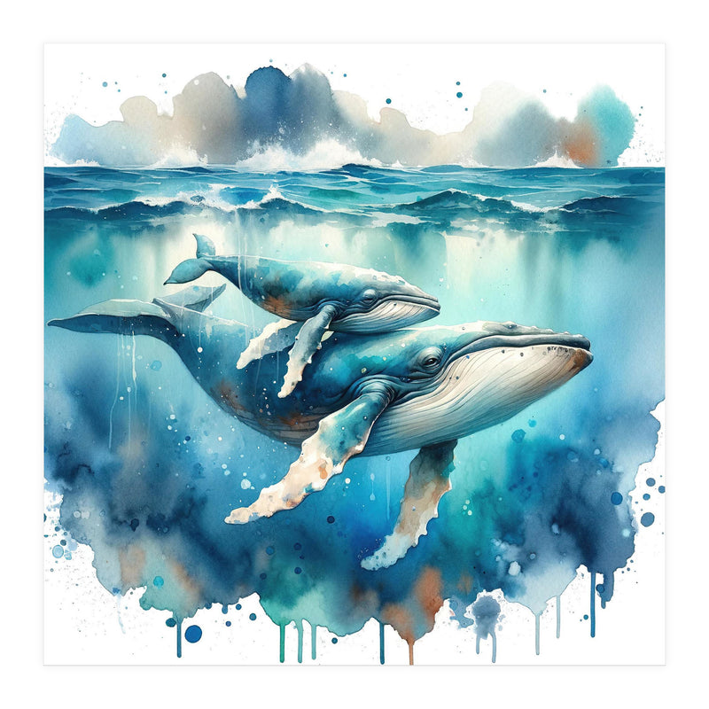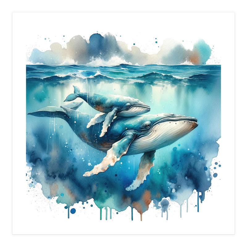 Mother And Calf Whales Watercolor (Print Only)