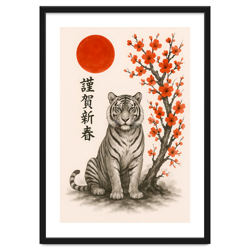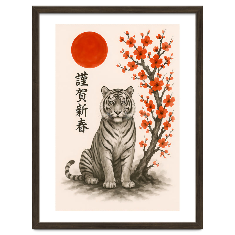 The Red Tiger of Wind and Fire" A powerful and aggressive piece of art, celebrating the strength, bravery, and king-of-the-jungle status of the Tiger (Tora) within a dramatic Japanese aesthetic. This visual utilizes Black and Red contrast for maximum impact.