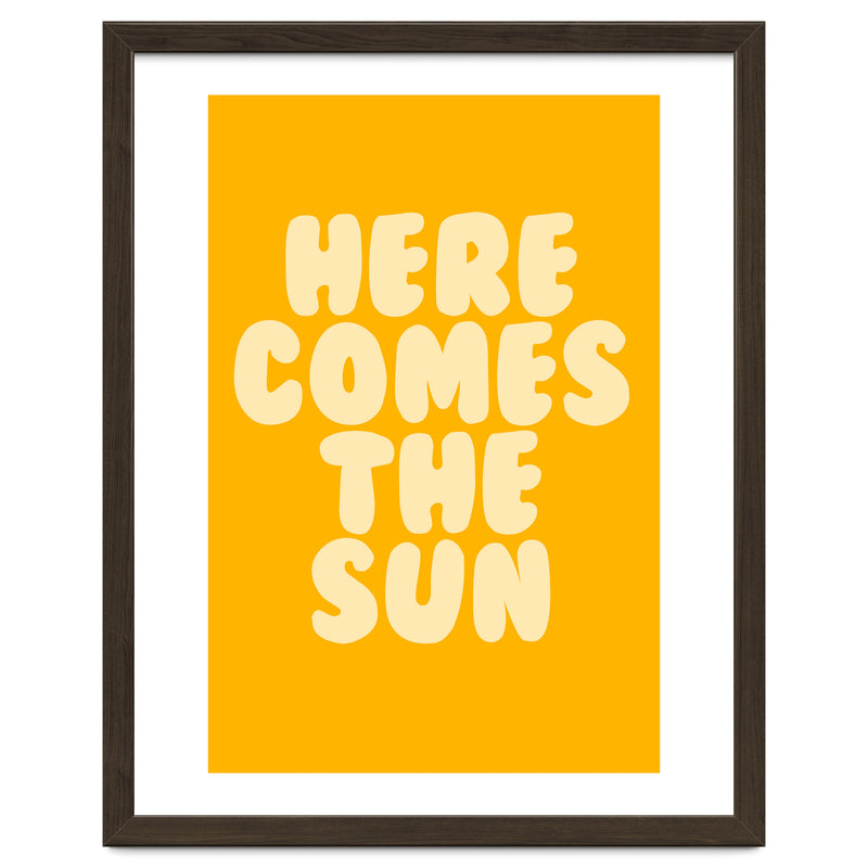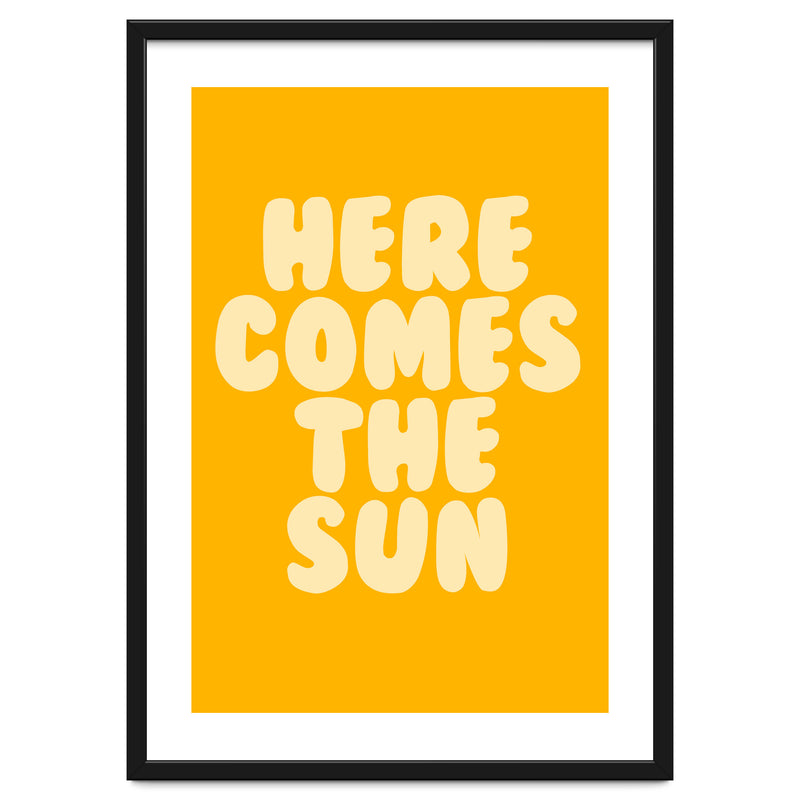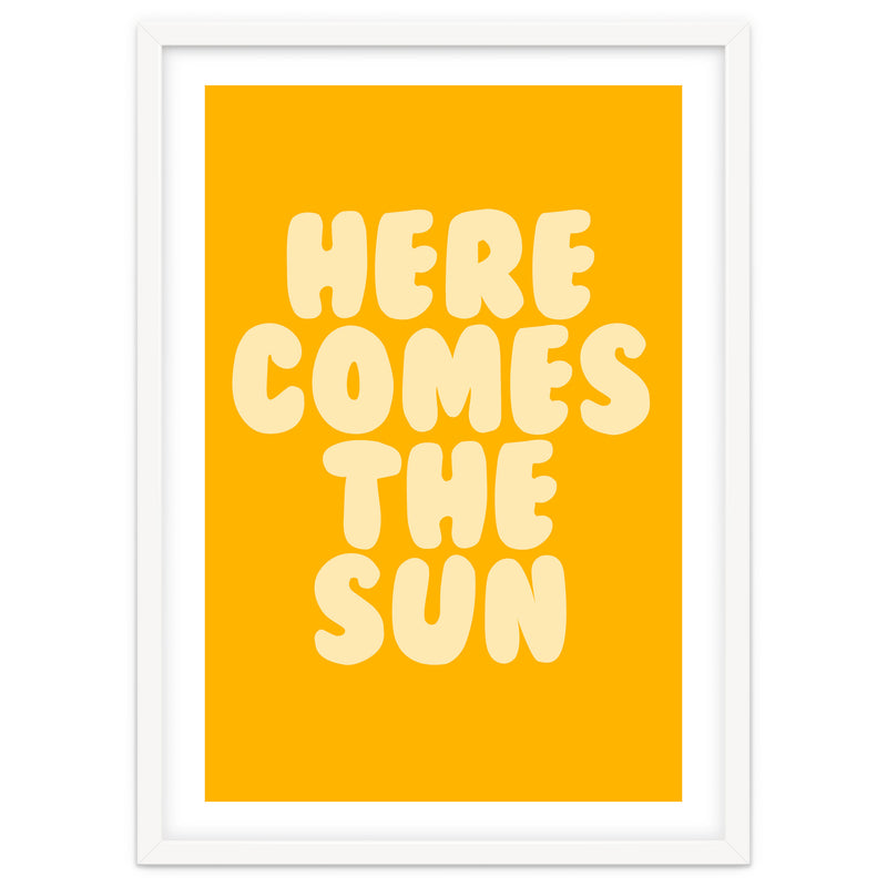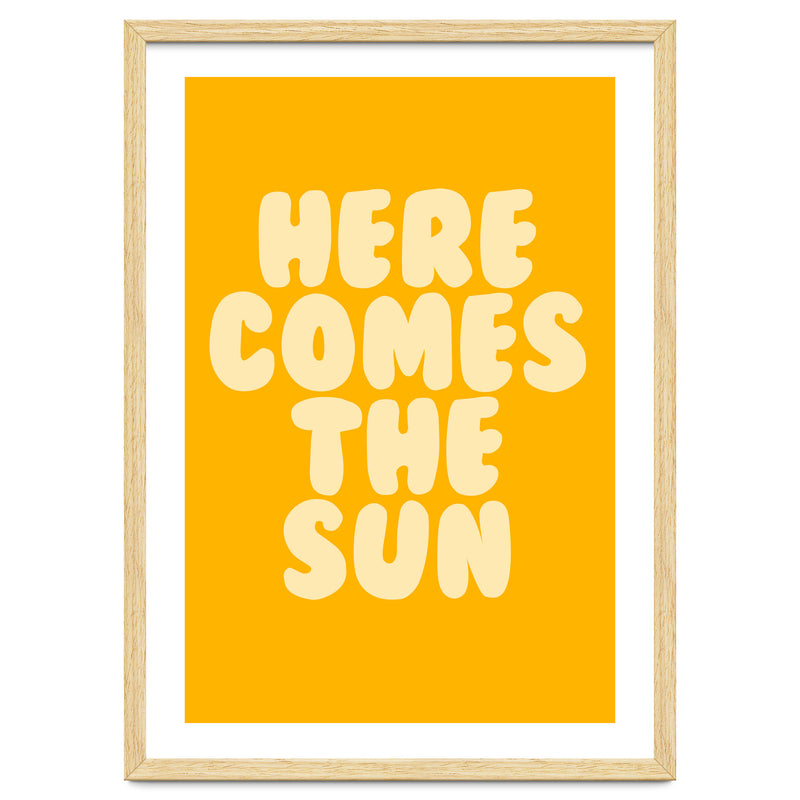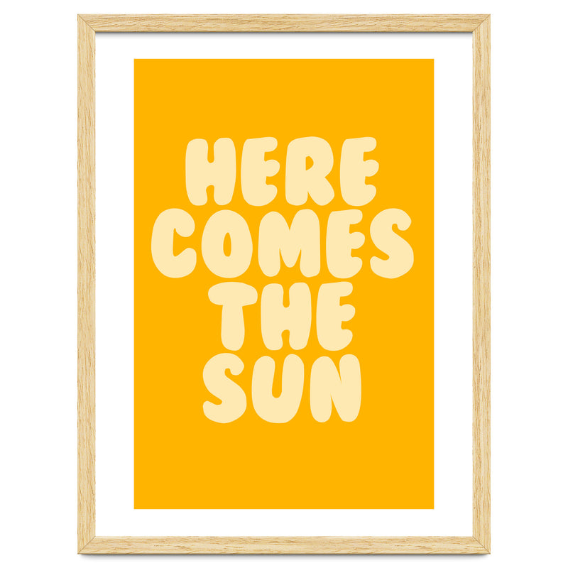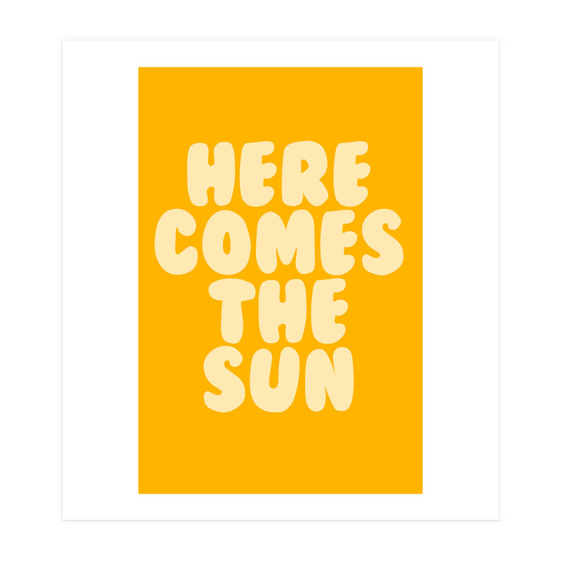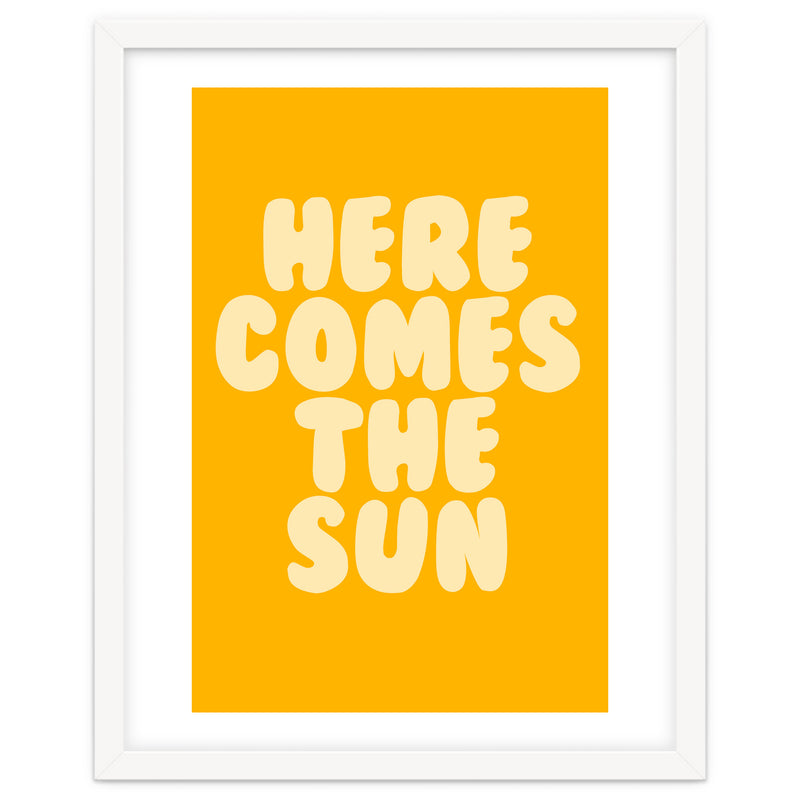 Here Comes The Sun, Positive Retro Sunshine Quote Print for Bright Happy Home Decor