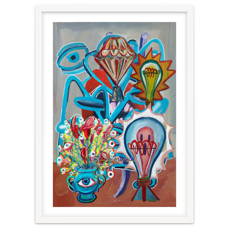 A small, white border frames the artwork for a “faux-matted” look. White border width is 2cm - 6.5cm (approx 1" to 2.5") depending on artwork size.