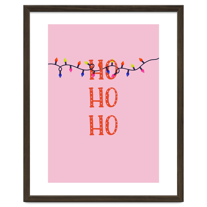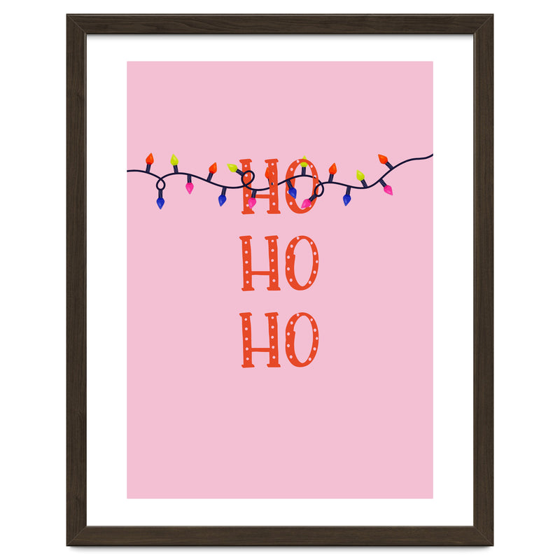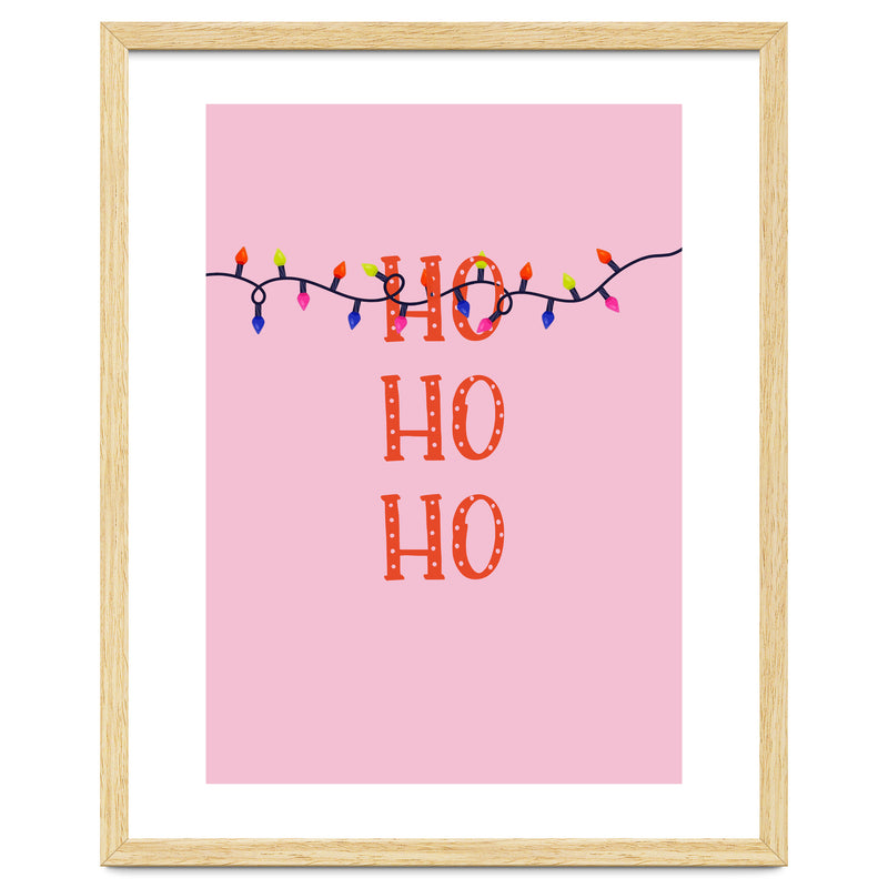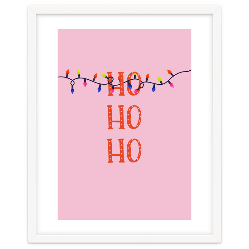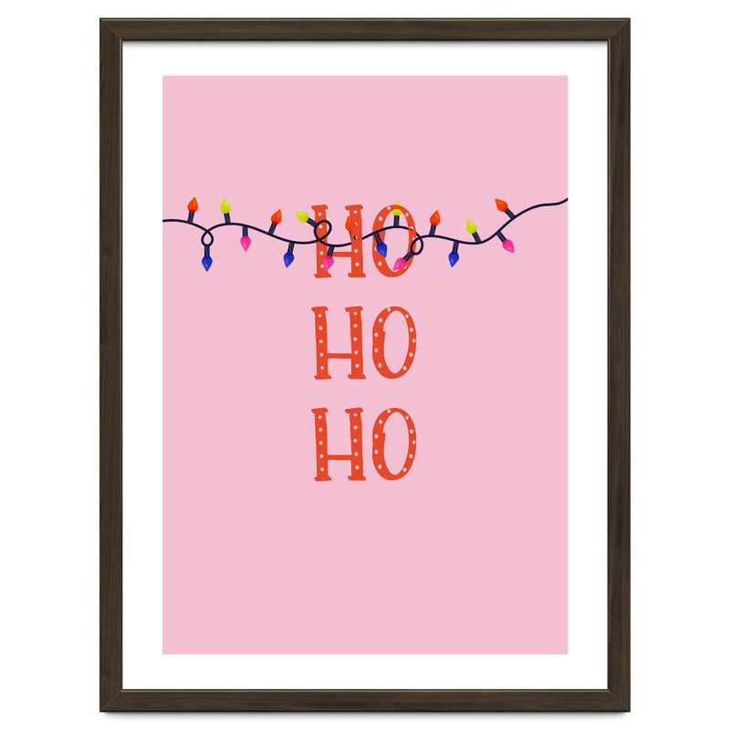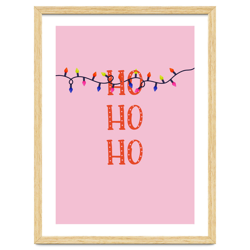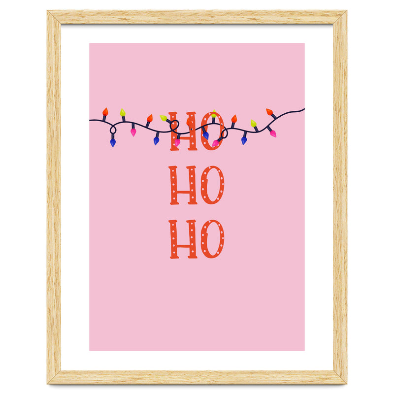 HO HO HO Christmas Lights Art, Pink Holiday Illustration, Modern Festive Quote