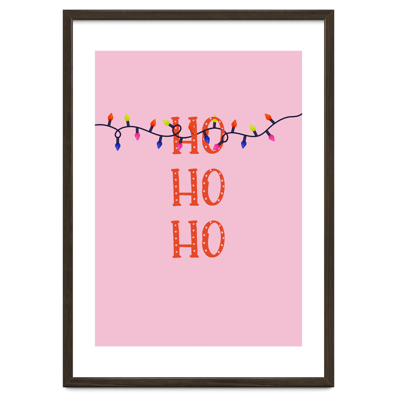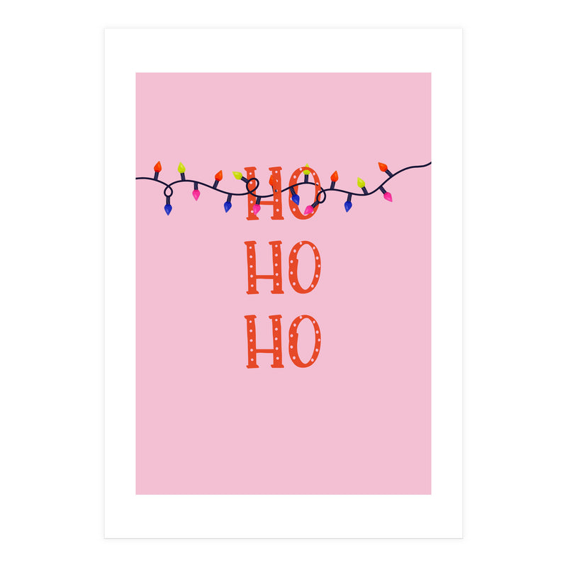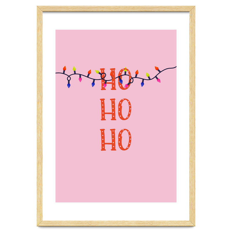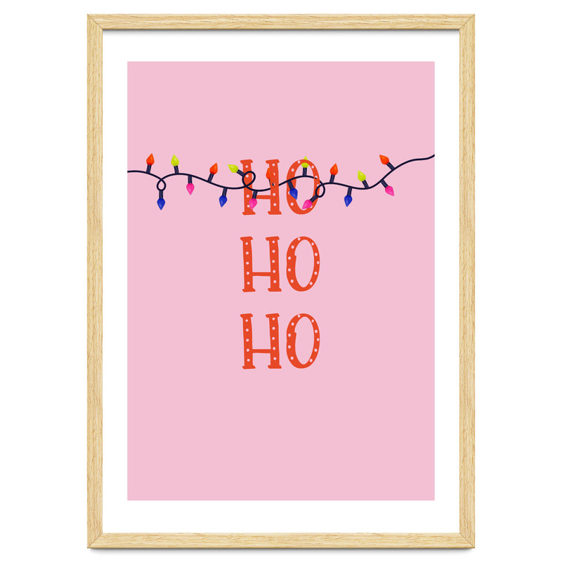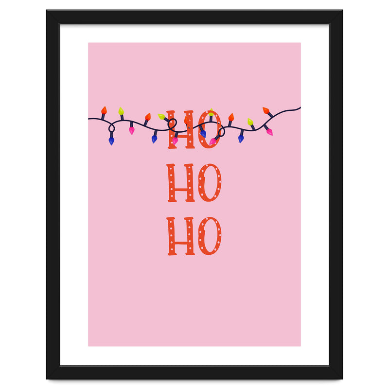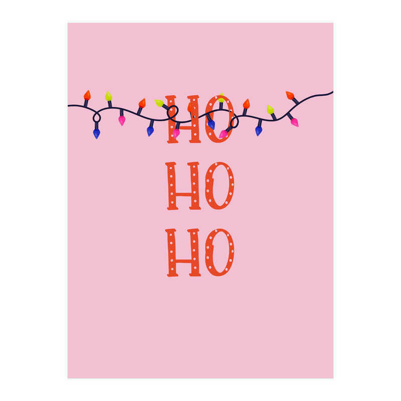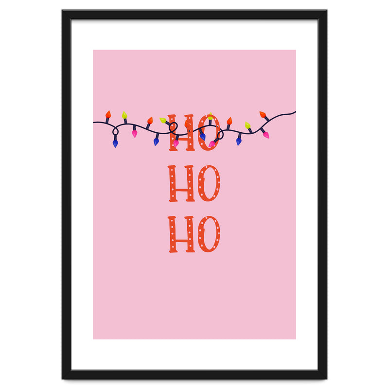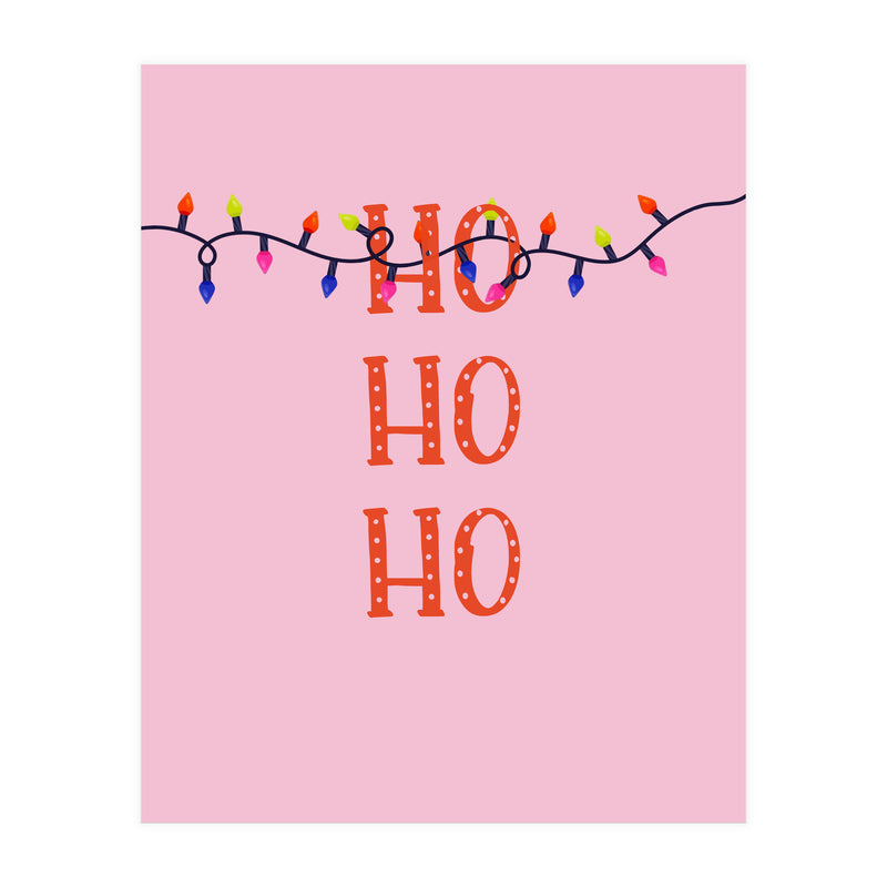 HO HO HO Christmas Lights Art, Pink Holiday Illustration, Modern Festive Quote