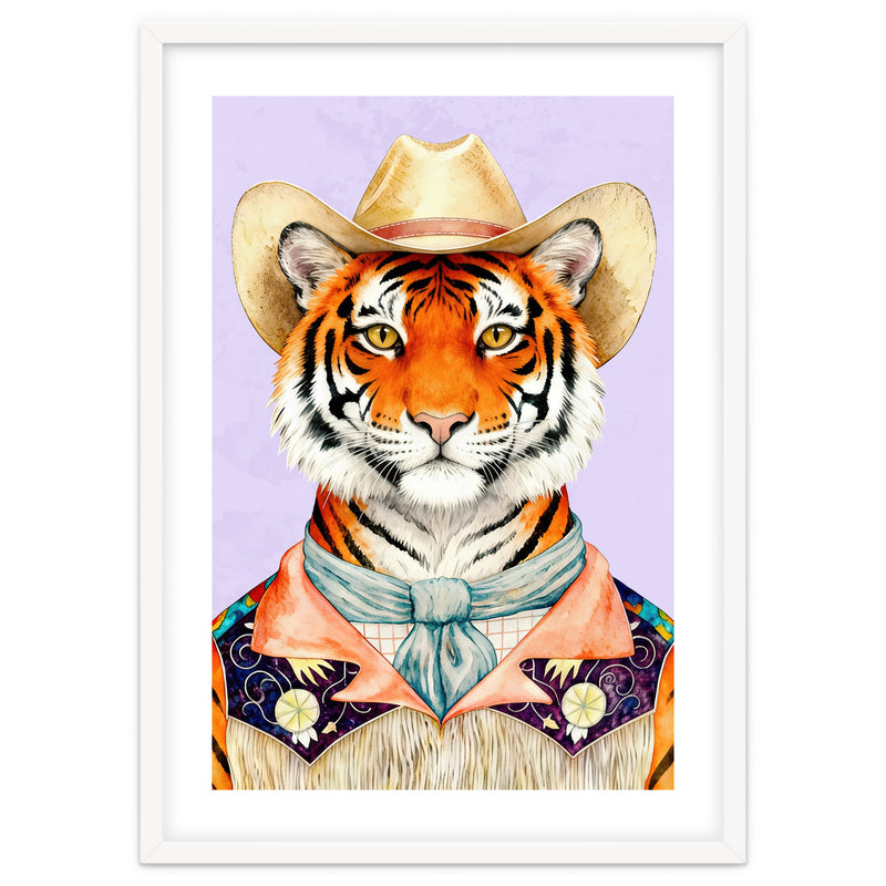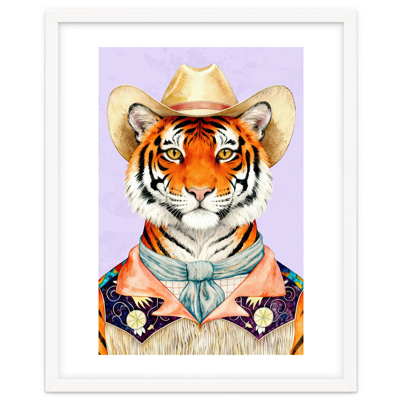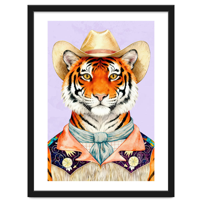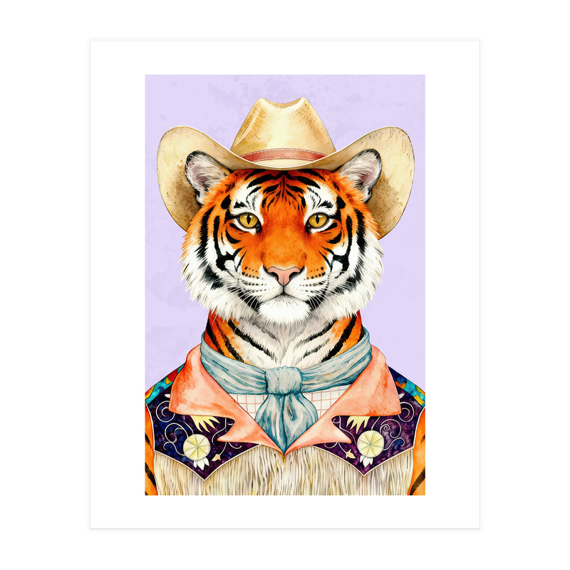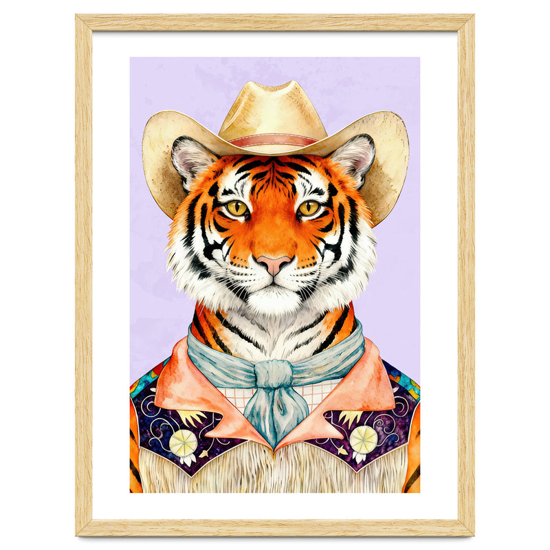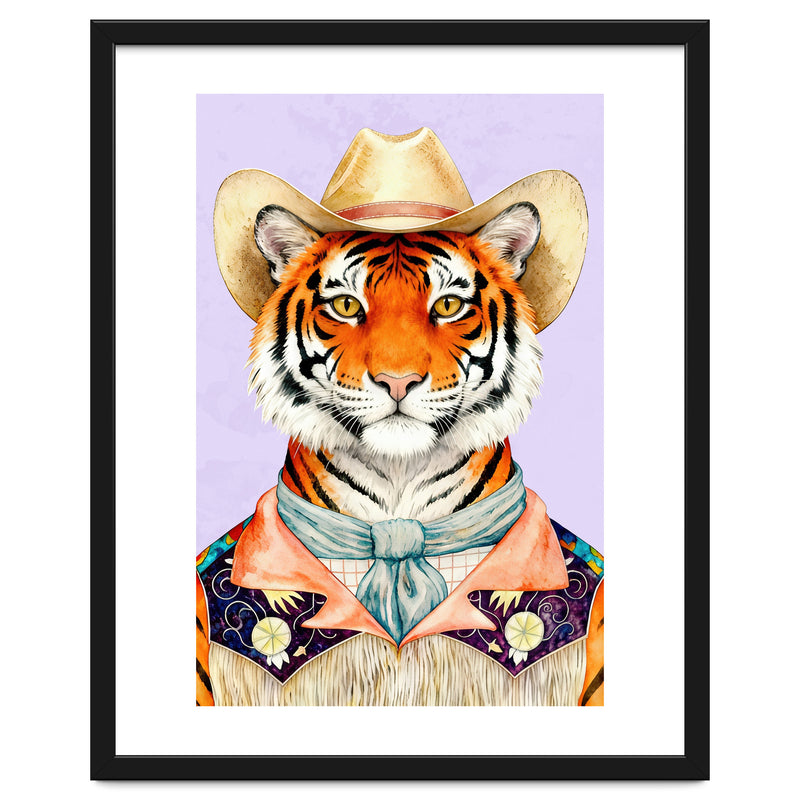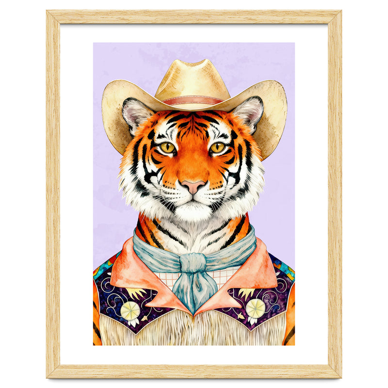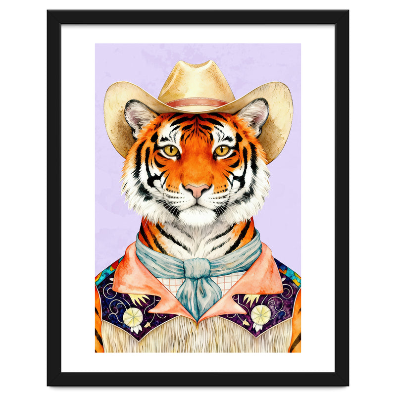Tiger Portrait in Hat Wild Cowboy Fashion
