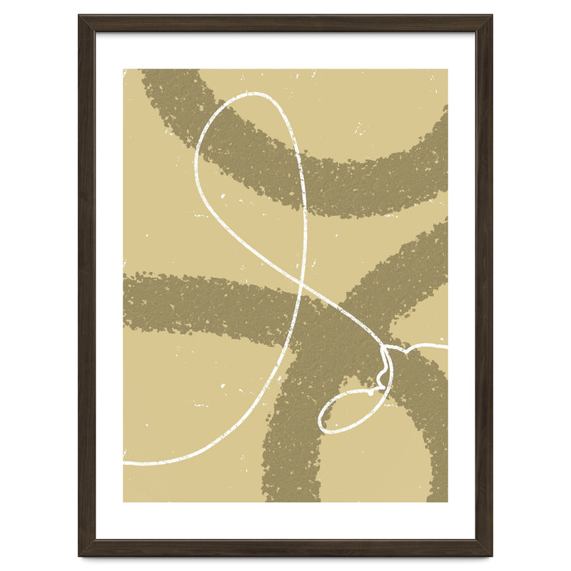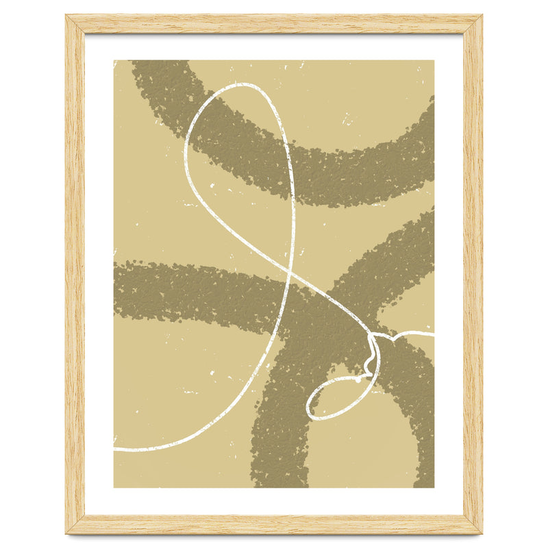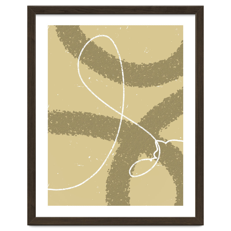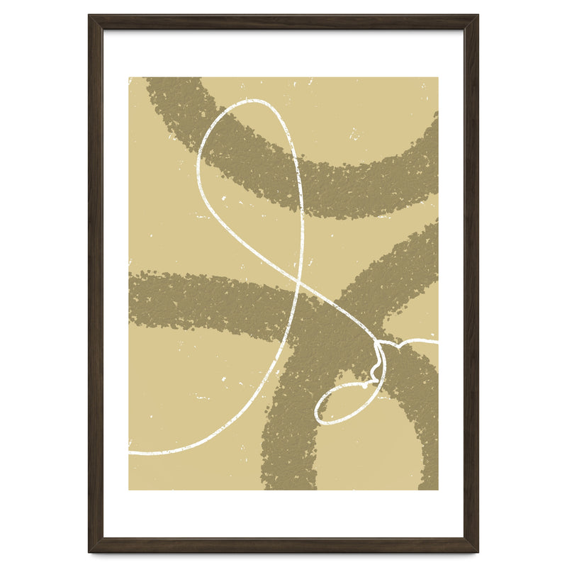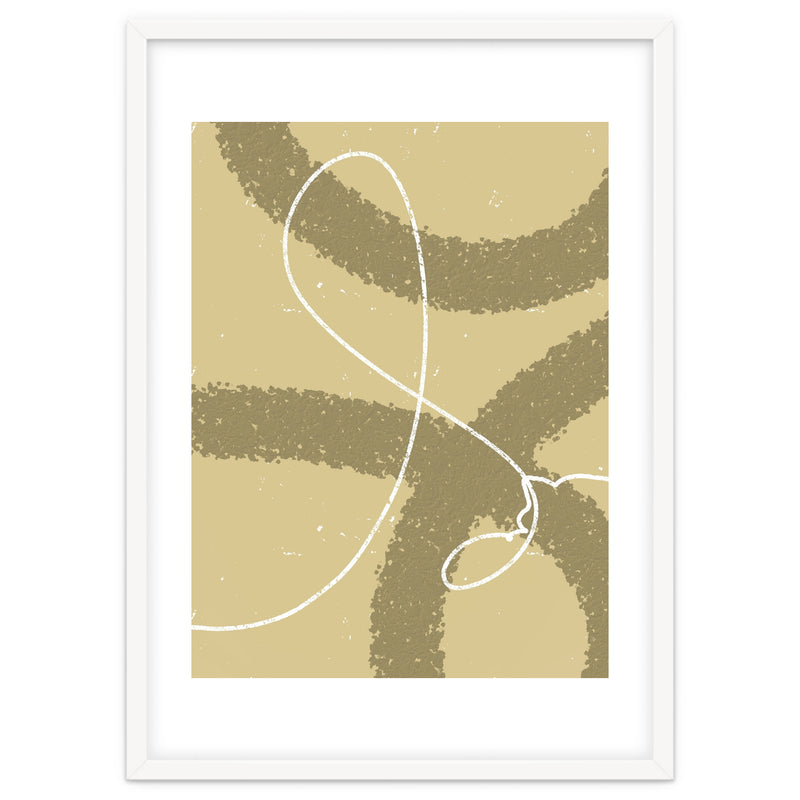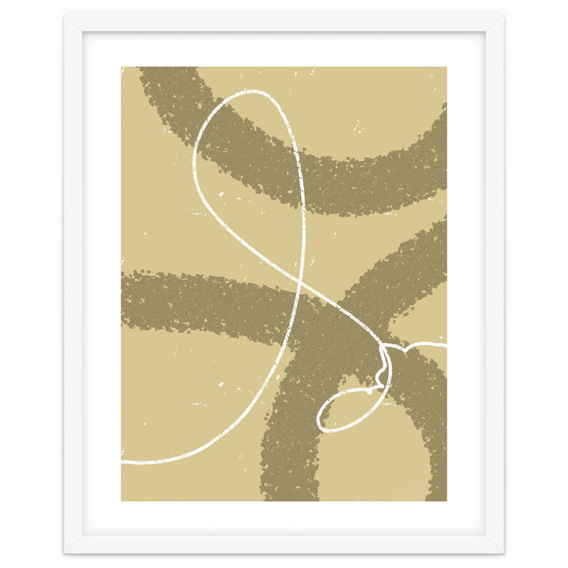 The winding white line on a earthy background creates the impression of wind traces blowing on a soft hill, depicting freedom and natural beauty.