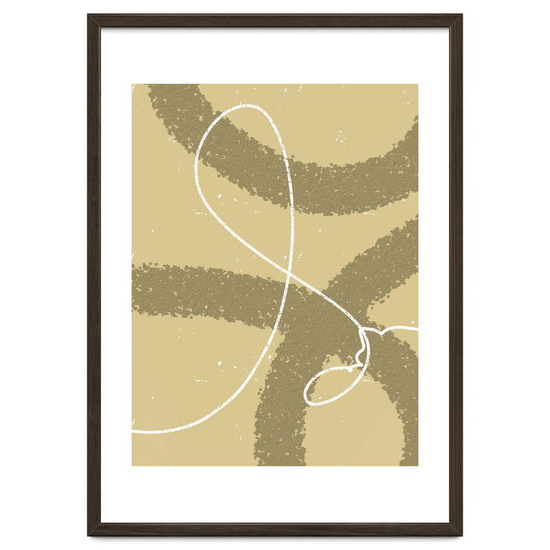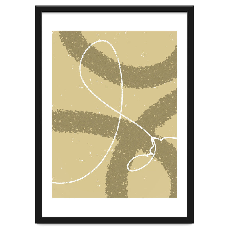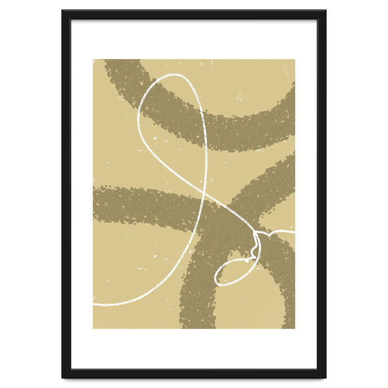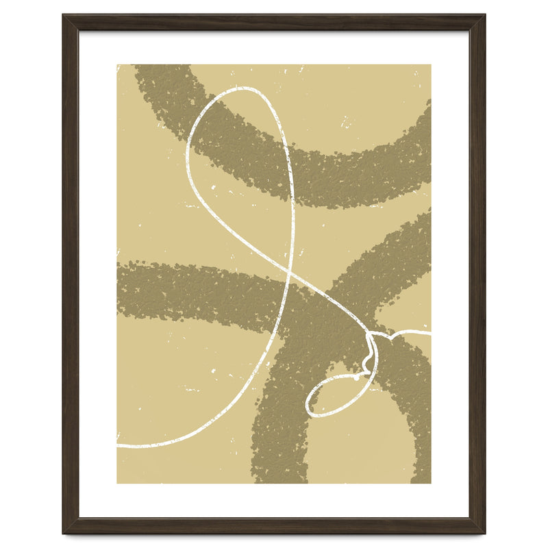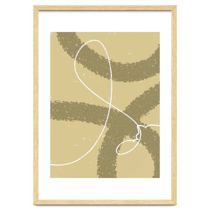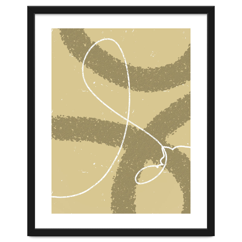 The winding white line on a earthy background creates the impression of wind traces blowing on a soft hill, depicting freedom and natural beauty.
