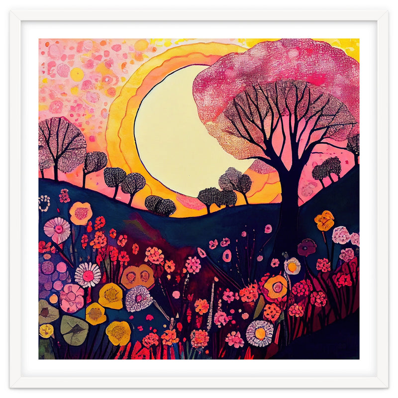 Folk Sunset Over Floral Hills (Print Only)
