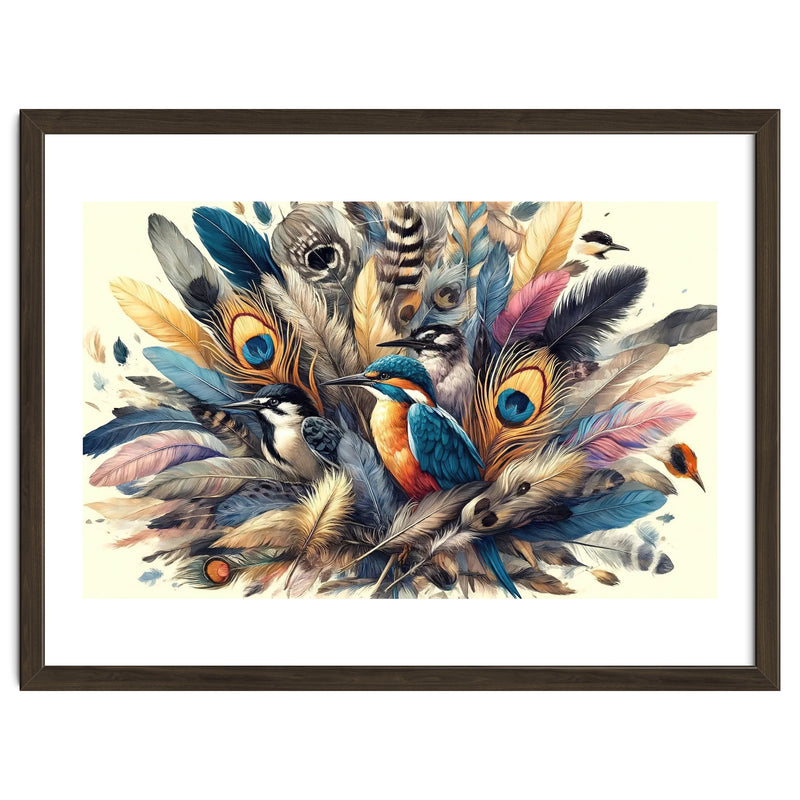 Kingfisher And Songbirds In Peacock Feathers (Print Only)