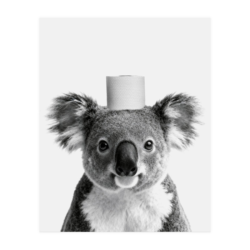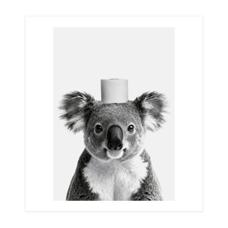 Koala, Toilet Paper Crown, Cute Animal Bathroom Art (Print Only)