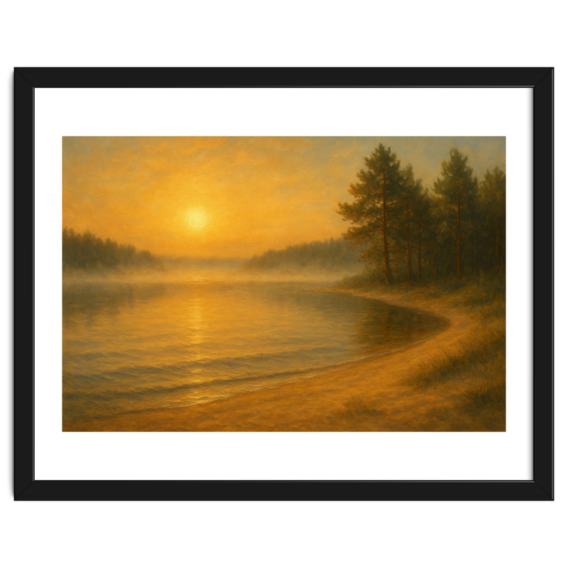 In “The Breath of Dawn”, part of the “Whispers of Light” collection, the artist captures the world’s first awakening — a serene lake wrapped in morning mist. The gentle golden light brushes over pine trees and sand, evoking the purity of untouched nature. Executed in realism with fine oil technique, the painting radiates warmth and meditative stillness, inviting the viewer into a moment of inner calm.